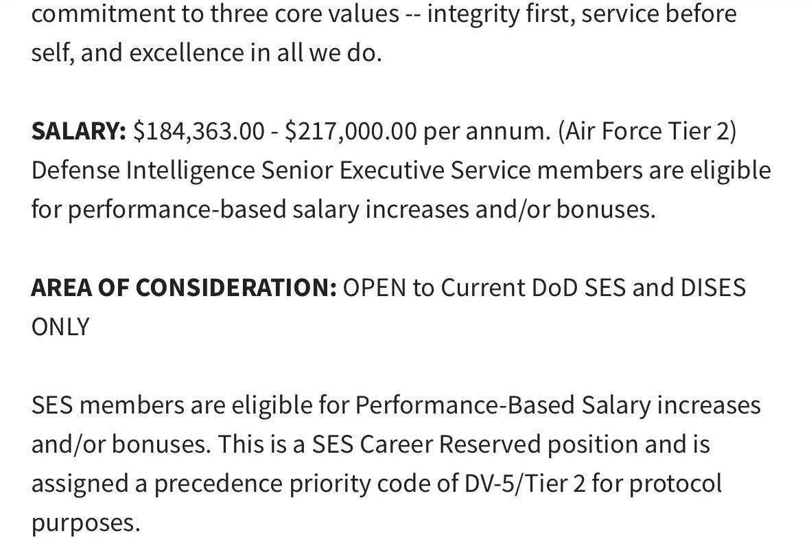 “This is a Tier 2 DISES position, and the announcement is open to current DoD Senior Executive Service members.”